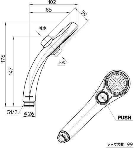 PS323B-81XA-MW2 低水圧用ストップシャワーヘッド