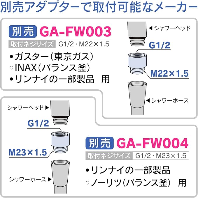 追加オプション(※)でホースや、接続アダプターをセット購入できます。LIXILストアからネット購入できるので、シャワーの浴び心地が気になってる方はぜひ購入してみてください!