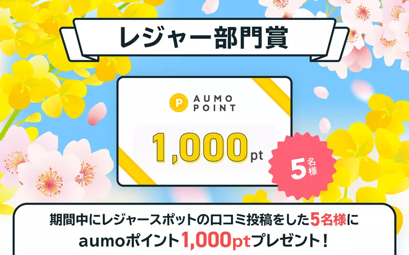 期間中にレジャースポットの投稿をした人の中で素敵な投稿をした5名様にaumoポイント1,000ptをプレゼント!