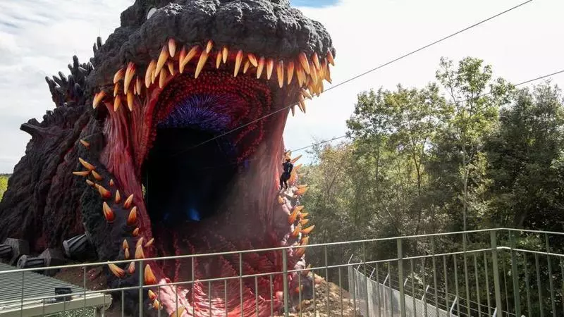 「ゴジラ迎撃作戦~国立ゴジラ淡路島研究センター~」は、淡路島に上陸(※)した実物大のゴジラの迫力を存分に味わえるアトラクションです。国立ゴジラ淡路島研究センターの一員となって、ジップラインでゴジラの体内を監視したり、ゴジラやキングギドラ、モスラが載っている怪獣図鑑を完成させたりする体験ができます。