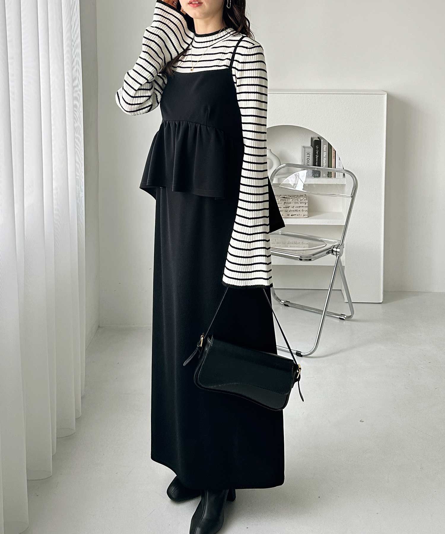 - 楽ちん!ペプラムキャミワンピース