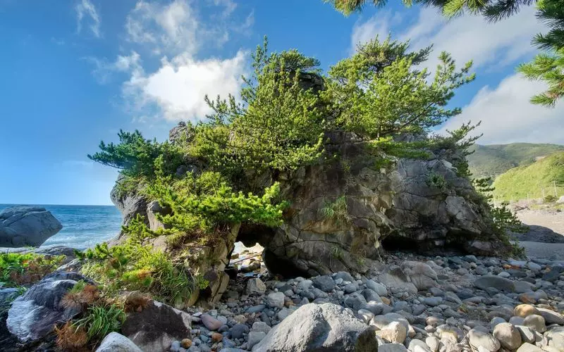 こちらは、神津島湾から車で約5分の場所にある「山の神・冷風穴」です。港村から、黒島登山口に行く途中にあるこの場所は、冷たい風が出てくる何とも不思議な穴なんです♪前浜海岸にも同じような場所があり、夏には枕を持ってきて昼寝をする人もいるんだとか!