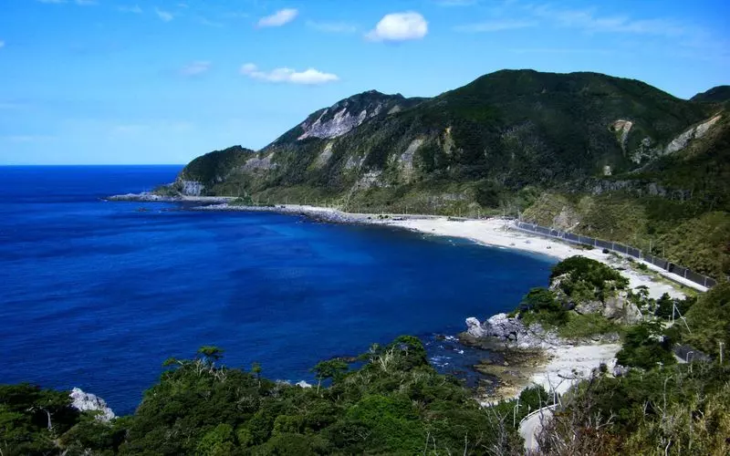 白砂と海の青のコントラストが美しい海岸。赤や黄色などカラフルな玉石が落ちていることから、別名「五色浜」と呼ばれてるんだとか。(※神秘的なものとされているので、玉石を持ち帰るのはアウト…!)