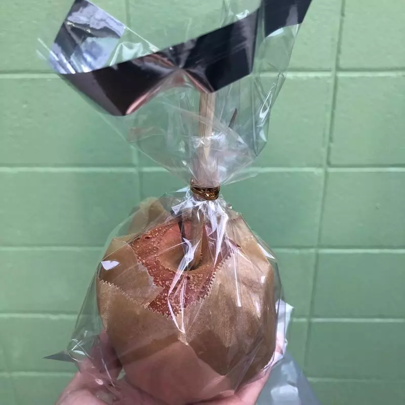 お持ち帰りの時はまるまる1つのりんご飴をこのようにラッピングされた状態で購入できます!
