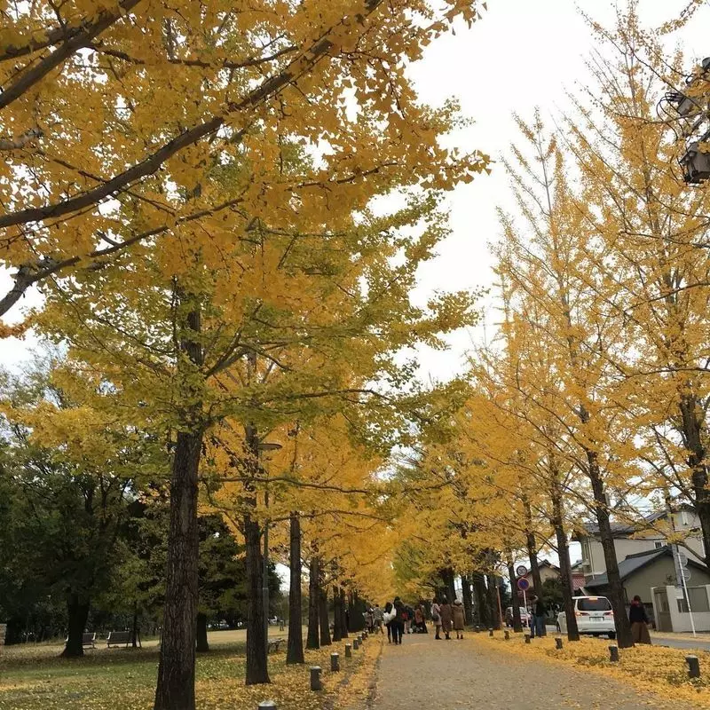 イチョウ並木の鮮やかさ、そのイチョウが散って黄色の絨毯をしきつめた様な路面は、絵画のような美しさですよ♡