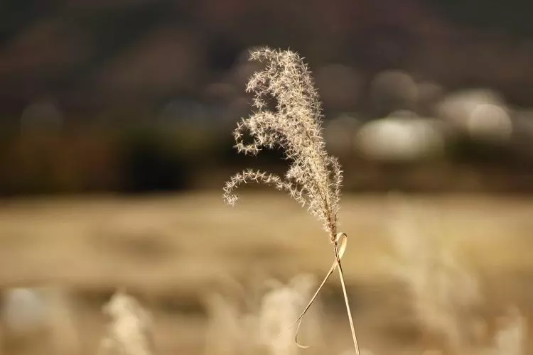 秋らしいススキの広がる高原に、1本のススキに焦点を当てて撮影されたドラマチックな1枚。