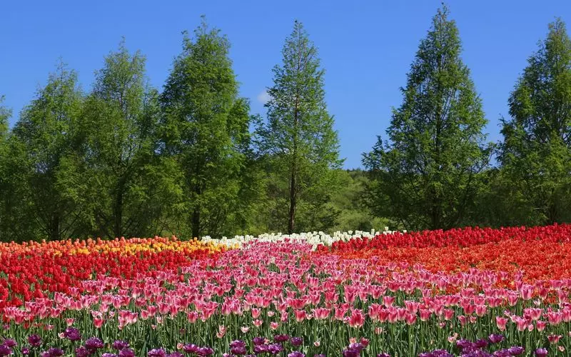 春には赤、ピンク、黄、白とカラフルなチューリップがメルヘンな世界を作り出します♡