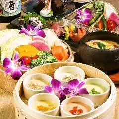 蒸ししゃぶ以外にも群馬県産の「叶家豆兵衛」や「湯葉の天婦羅」などがセットで、ワンランク上の宴会にオススメのコース!