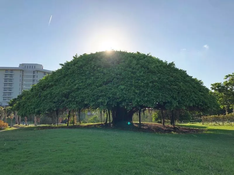 冬になると、このガジュマルの木がライトアップされて、イルミネーションを楽しむことができます。