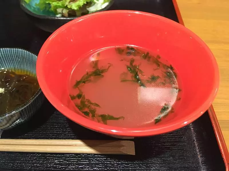 ローストポーク丼にアーサーのスープともずく、サラダがついたボリュームたっぷりのメニューでした!