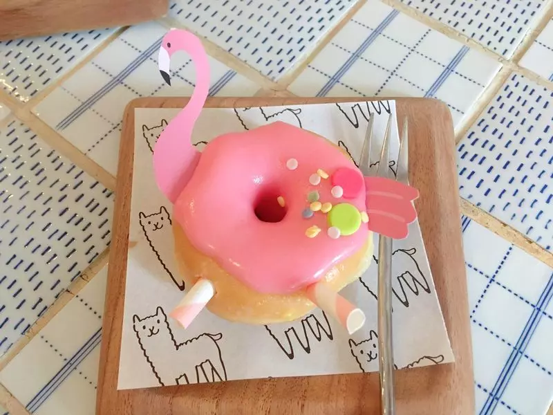 フラミンゴのドーナツは、ピンクのアイシングがとてもかわいく、ぜひ注文してほしいドーナツ!