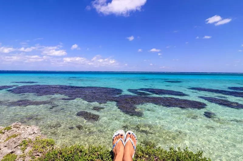 澄み切った、太陽にきらめく青い海。
