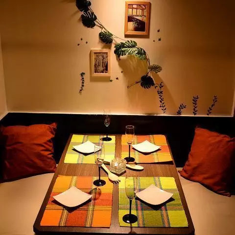 店内にはソファのデザイナーズ個室があり、密な女子会にももってこい♡