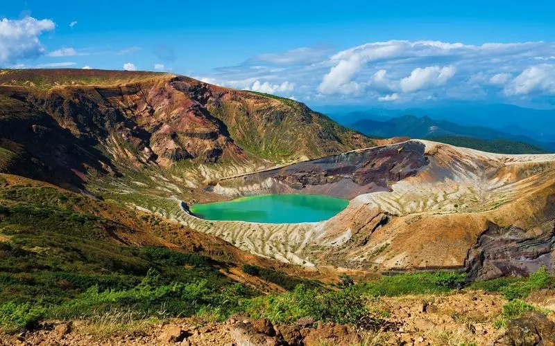 美しいエメラルドグリーンの湖「御釜(おかま)」は蔵王山山頂のカルデラ湖です。「御釜」へのアクセスは山形県と宮城県を蔵王山を越える形でつなぐ道路「蔵王エコーライン」です。
