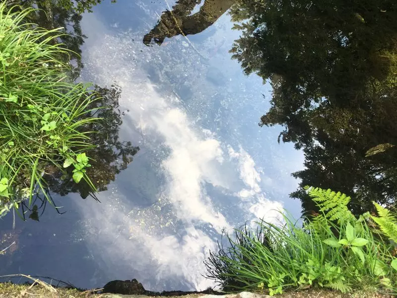 この写真、緑の池に見えますが水は透明で底にある草が見えているんです!