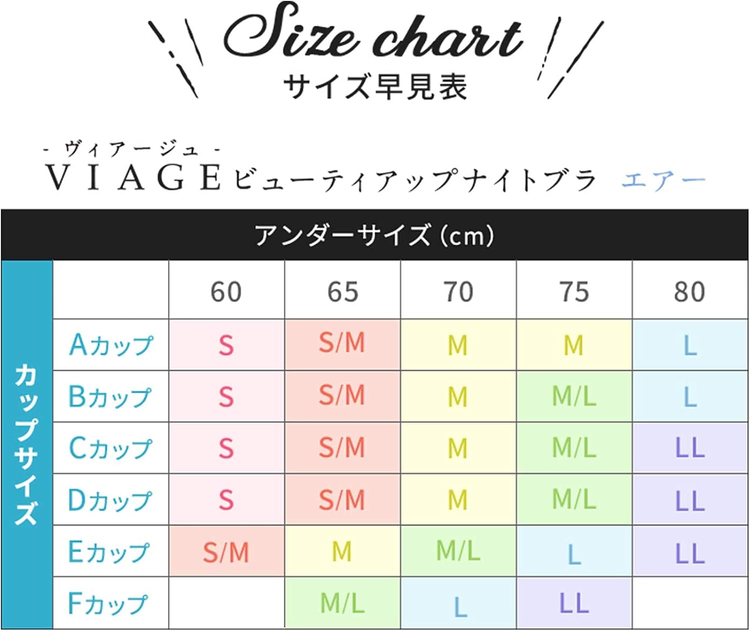 ナイトブラを選ぶ上で大切なことは「自分にあったサイズのものを選ぶこと」です。ナイトブラのサイズ展開は基本的にS・M・L・LLの4タイプ。各メーカーによって対象のサイズが異なるので、購入するナイトブラのサイズ表を必ず確認しましょう。