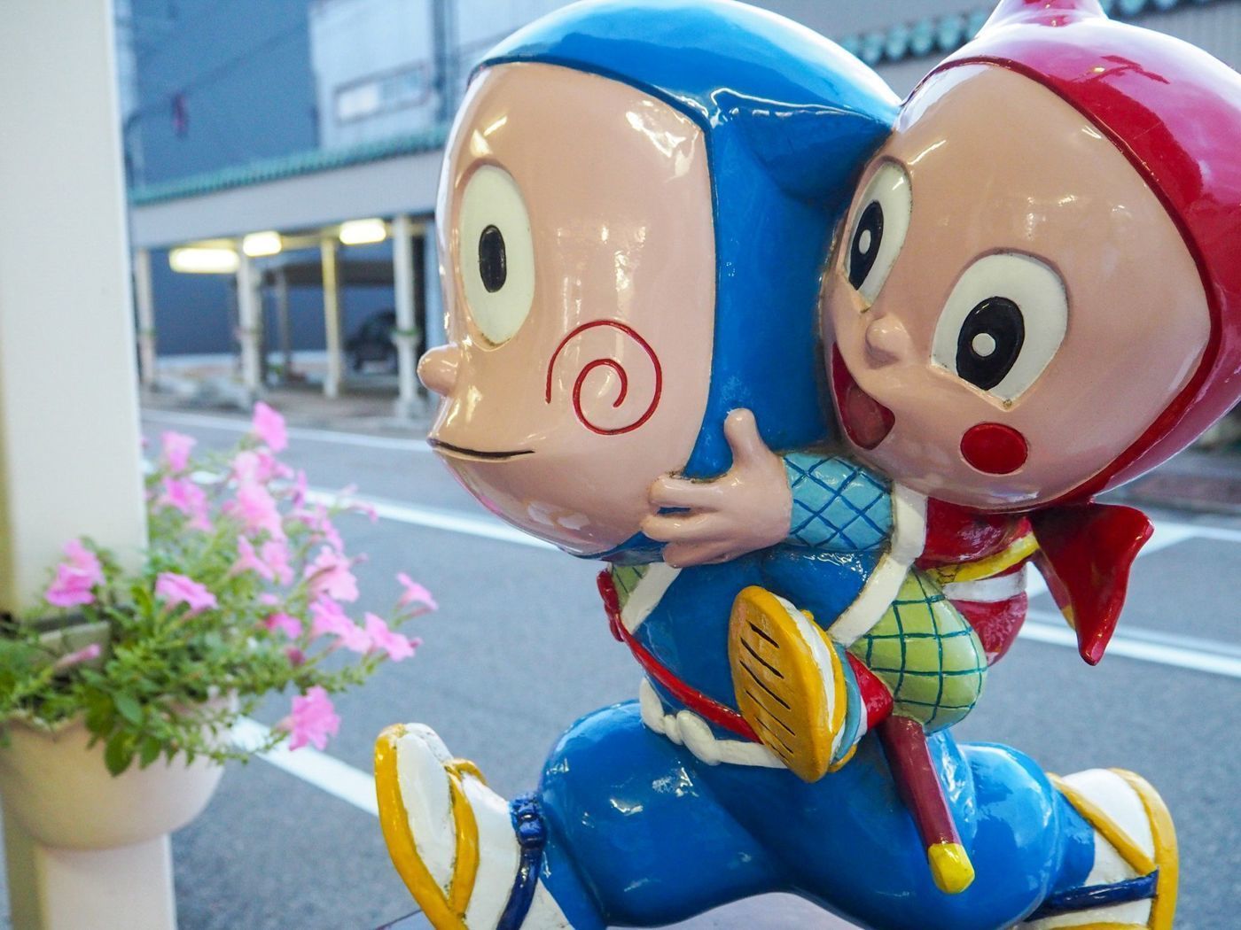 「氷見の寒ブリ」で知られる海辺の町、氷見市。「氷見漁港場外市場 ひみ番屋街」から歩いてすぐの、比美町商店街を中心に約600mほどの通りやその周辺は、「忍者ハットリくんロード」と呼ばれ、漫画「忍者ハットリくん」にまつわるスポットが沢山あるんです!今回は商店街のユニークな観光スポットをご紹介します。