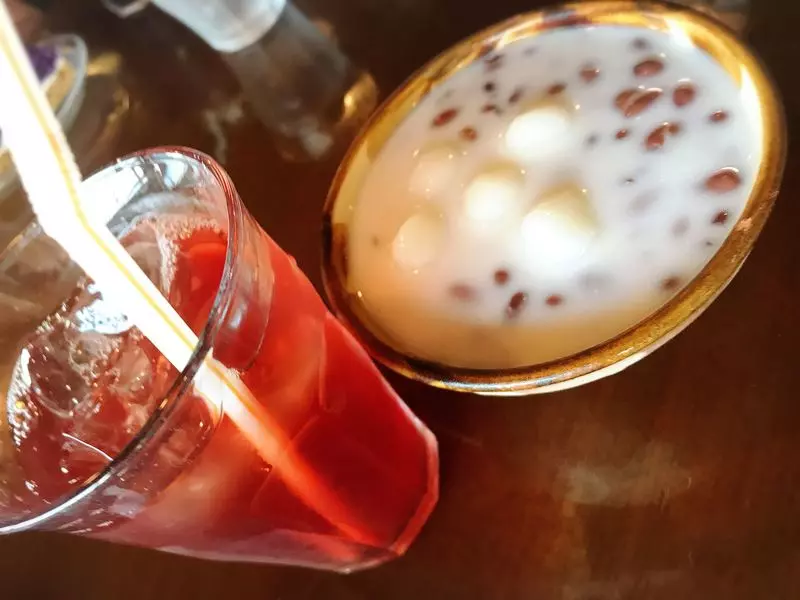 ココナッツミルク&金時豆、餅入りの冷たいぜんざいで、人気メニュー♡
