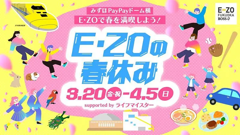 BOSS E・ZO FUKUOKAでは、2026年3月20日(金 祝)〜4月5日(日)の期間限定で春のイベントを開催します。家族や友達、野球ファンの仲間と思いっきり楽しめるコンテンツが盛りだくさん!