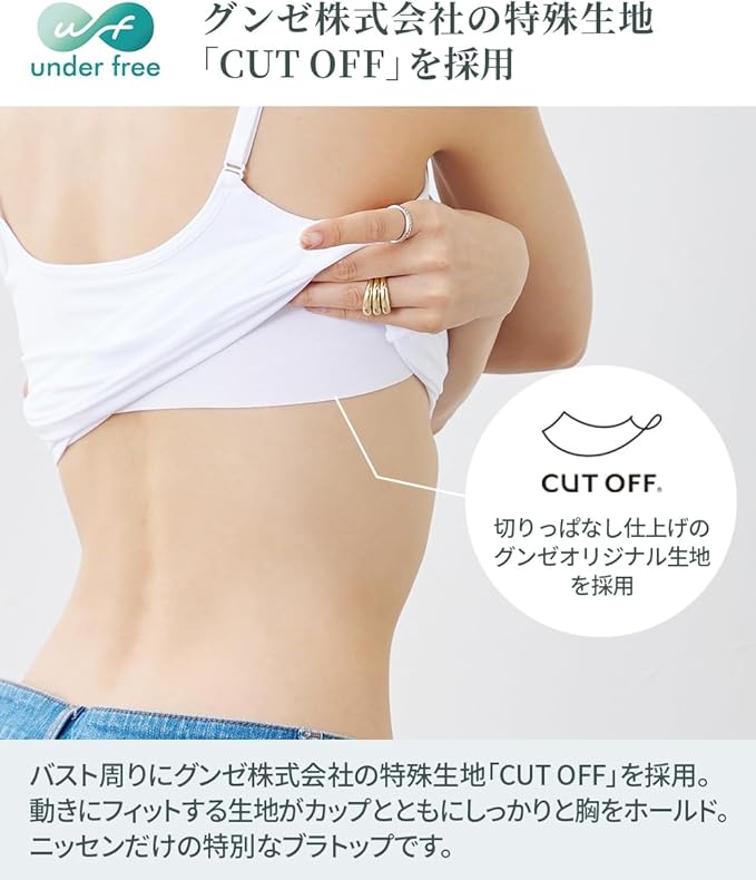 カップ付きデザインなので楽に過ごせて、シンプルな構造ながらもサポート力があるのもポイント。770円(税込)というリーズナブルな価格も魅力で、イオンの公式サイトから通販で購入することも可能です。
