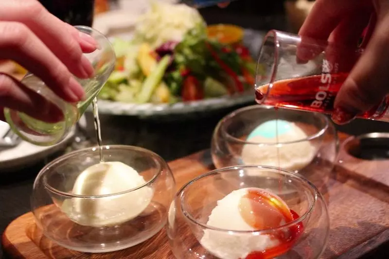フォトジェニックを体現したかのようなこちらのメニューは、「カラフルアフォガート」¥480(税抜)。