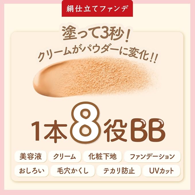 『舞妓はん』の「BBクリーム(01 ライトベージュ)」は、美容液やクリームといったスキンケア要素から、化粧下地、ファンデーションといったベースメイク効果まで8役が期待できるアイテム。パウダー入りでサラっとなめらかな仕上がりが特徴です。