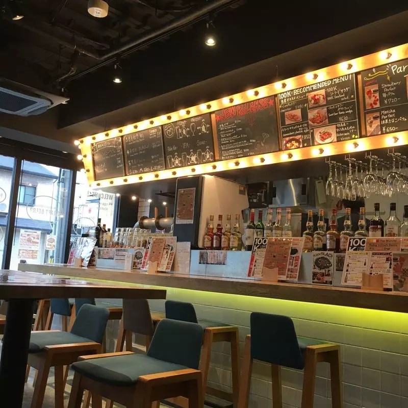 河原町から徒歩約25分の静かな場所にある「100k CRAFT BEER & PIZZA 」では、数種類のピザやパスタなどのイタリアンと共に、様々なビールを味わう事が出来ます。