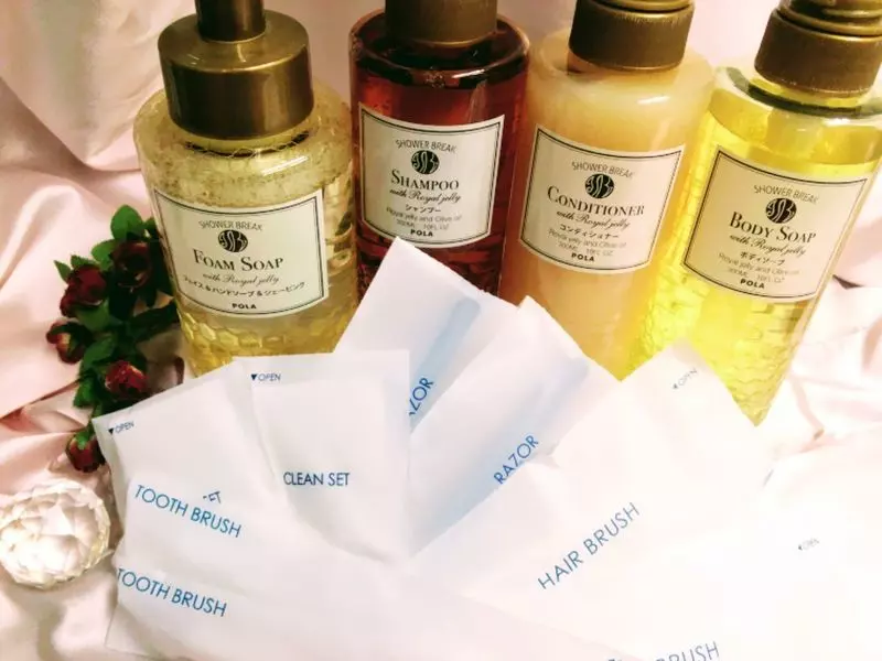 シャンプーやコンディショナーなどには、『POLAアロマエッセゴールドシリーズ』を使用し、ぜいたくで豊富なアメニティがあるのもうれしいポイント!女性のお客さんにはへアメニティーセットもプレゼントしています。