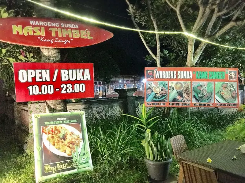 バリの夜。夕飯を求めてクタの街をウロウロするのりぴょちゃん。とにもかくにも飲食店が多い!迷いに迷って…お外で食事が可能な屋台ワルン「Warung Sunda Kang Zanger(ワルン スンダ カンザンジャー)」に入店でーす♪