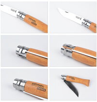 『オピネル』の「カーボンスチール No.9」は肉や魚、野菜を切るときに使いやすい折り畳みナイフです。必要なときだけ刃先を出せるので、持ち運ぶ際にも怪我をしづらいのが特徴。