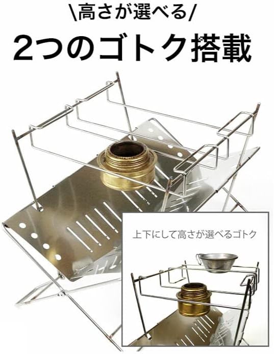 - 小型のクッカーを置けるゴトク付きで調理にも使える