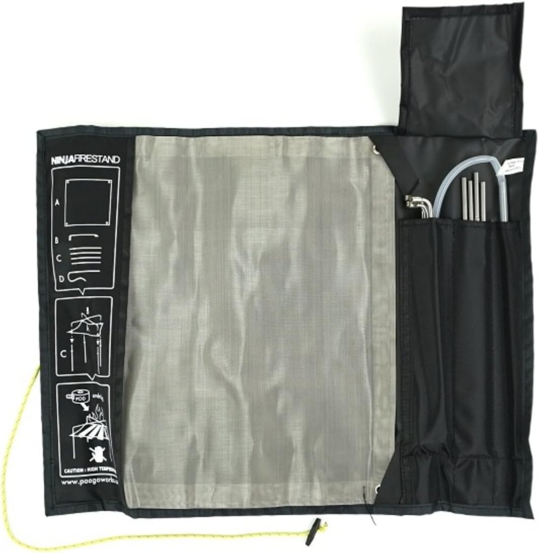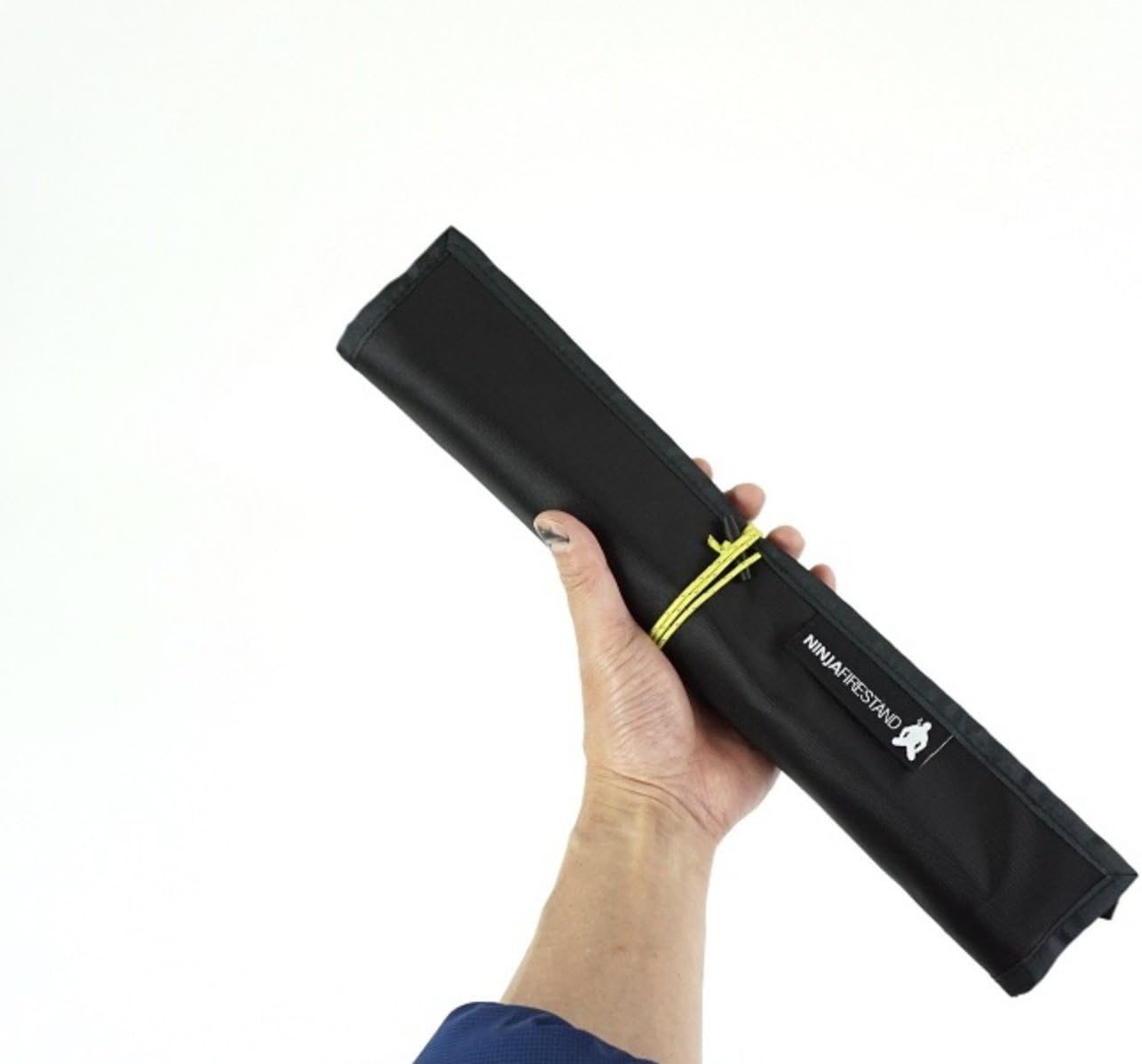 『PaaGoWORKS(パーゴワークス)』のニンジャファイヤースタンドは、ゴトクから火床がぶら下がる独特の構造で、荷重がかかることで安定性が増します。すべてのパーツが付属の巻物ケースに収納可能で、組み立てもシンプルです。
