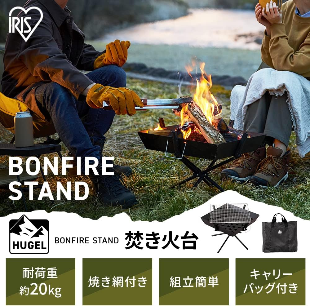 『アイリスオーヤマ』の焚き火台は、工具を使わず、各パーツを組み合わせるだけで簡単に組み立てられるのが魅力。ロストルが付属しており、四隅の設計によって空気の流入がスムーズに行われ、炭の調整や燃焼がしやすいのが特徴です。