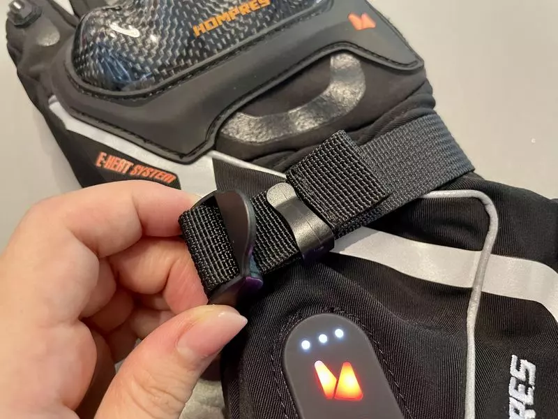 今回は付属しているバッテリーで使用してみました。バッテリーを専用充電器で充電し、グローブの内側についたポケットにあるコネクターと、バッテリーをつなげて入れれば準備完了です。