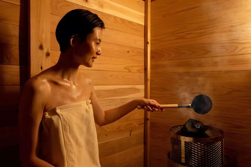 資料を読んで入浴方法を学んだら、温泉療法専門医早坂信哉氏が監修したサウナでゆっくり汗を流しましょう。浴室から出たらシャワーで全身をキレイにして、外気浴を楽しんでください。