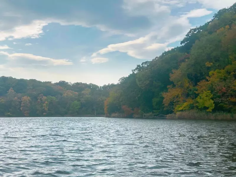 鮭の遡上を見た後は、対岸の紅葉を束の間楽しむことに。