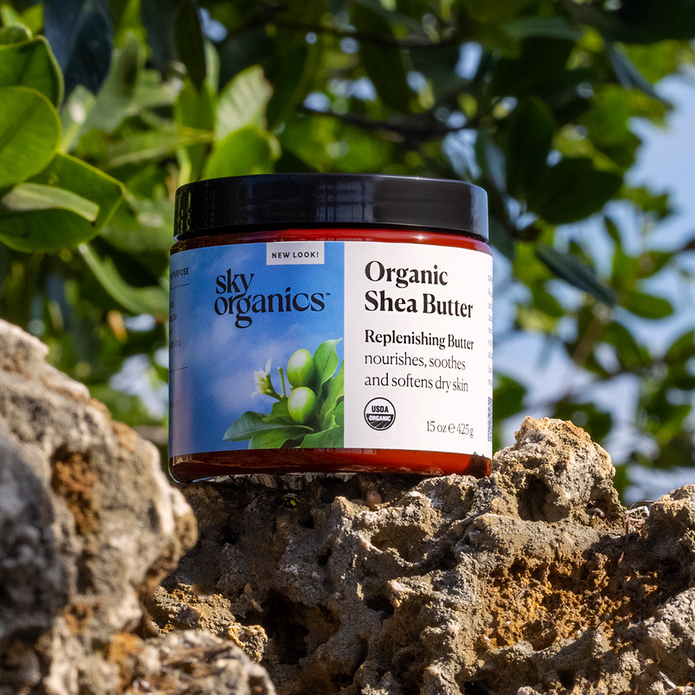 『スカイオーガニック』の「シアバター」は、100%(※)未精製のシアバター。天然の色合いや香りが残っており、手のひらでシアバターを温めるだけで、なめらかに馴染みやすいのが特徴です。