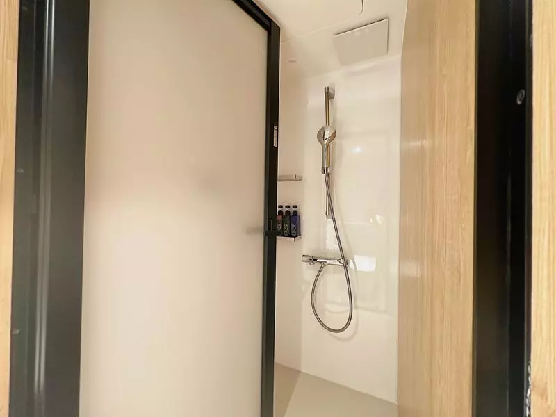 トイレの向かいには、なんとシャワーブースまで!しかもこちらのシャワーブースには、お子さんが間違って入ることのないようチャイルドロックまで付いているんですよ。ここにも、ラビスタ観音崎テラスの細やかな心配りを感じます。