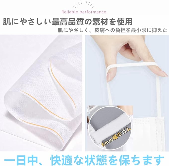 また、耳ひもにはふんわり柔らかい素材を使用しており、マスクの角も丸くなっているため肌を傷つけにくいのが魅力です。