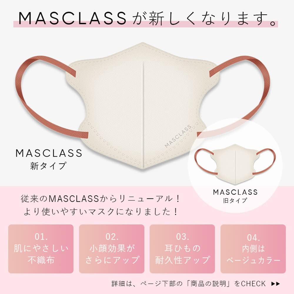 「MASCLASS(マスクラス) 3Dマスク 30枚入り バイカラー」ほほ周りのふくらみが少なく、すっきりとしたフェイスラインに見えるマスク。顔をなるべく小さく見せたい女性におすすめです。