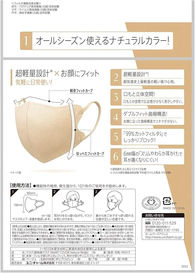 「快適マスク SMART COLOR(スマートカラー)」は、軽い付け心地と肌へのフィット感を重視した、普段使いにぴったりなマスク。頬骨と頬の部分がカーブしており、肌にフィットしやすい構造になっています。