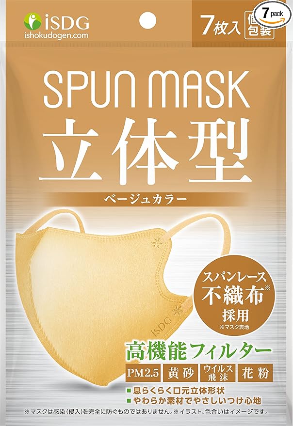 立体型スパンレース不織布カラーマスク SPUN MASK (スパンマスク) 個包装 7枚入り