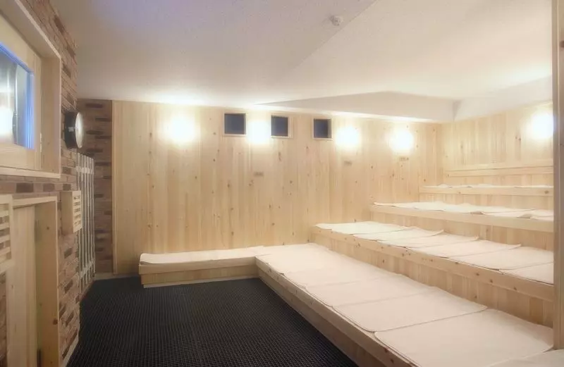 足を十分に伸ばせるくらい広~いサウナで、たくさん汗を流しませんか?