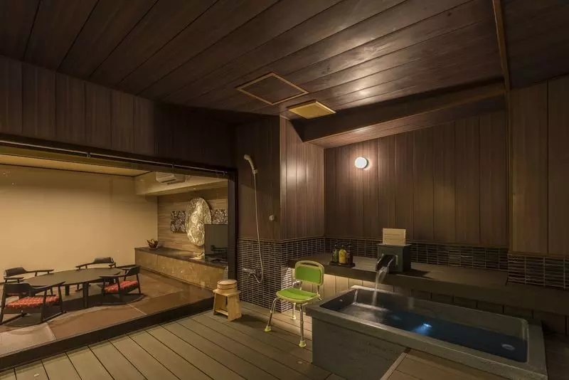 お部屋に設置された露天風呂は、年配の方や車椅子の方でも使いやすくなっているそうです◎