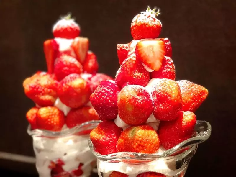 あまおうをたくさん使用した、高さ30センチくらいある大きなパフェ!
