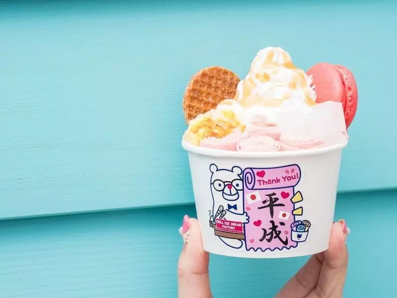 平成の30年間にブームになったなつかしいスイーツが1つのロールアイスクリームに!