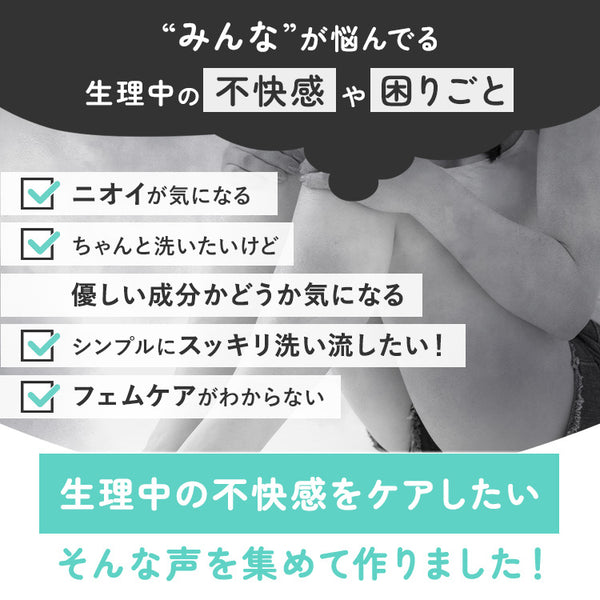 - 「生理中の不快感」に着目したフェムケアソープで生理中も楽しく過ごそう!