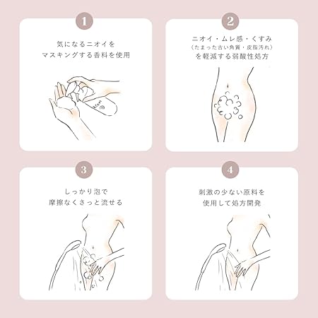 無香料でやさしい使い心地が特徴で、香りが苦手な方にぴったり。汚れや古い角質を洗い流してくれるので、普段からデリケートゾーンのにおいや黒ずみが気になるという方におすすめです。