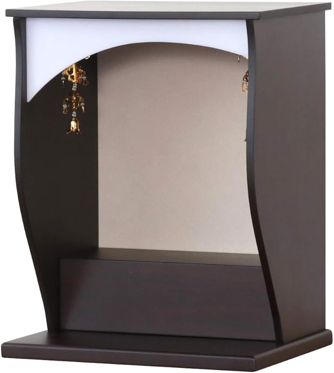 ミニ仏壇 シルクは、側板に曲線を用いた印象的なフォルムが特徴的。仏具などの取り扱いがしやすいのがメリットです。扉はなく、段高く飾れる棚板があり、取り外すことで大きめの仏像や位牌を祀ることも可能。