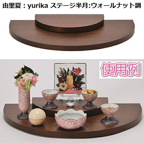 由里夏 ステージ半月は最新の家具スタイルに合わせたデザインとコンパクトなサイズを備えたモダンなステージ仏壇。リビングの狭いスペースにもフィットし、仏間がない家庭や、部屋の雰囲気に合わないため仏壇を置いていない方にもおすすめです。